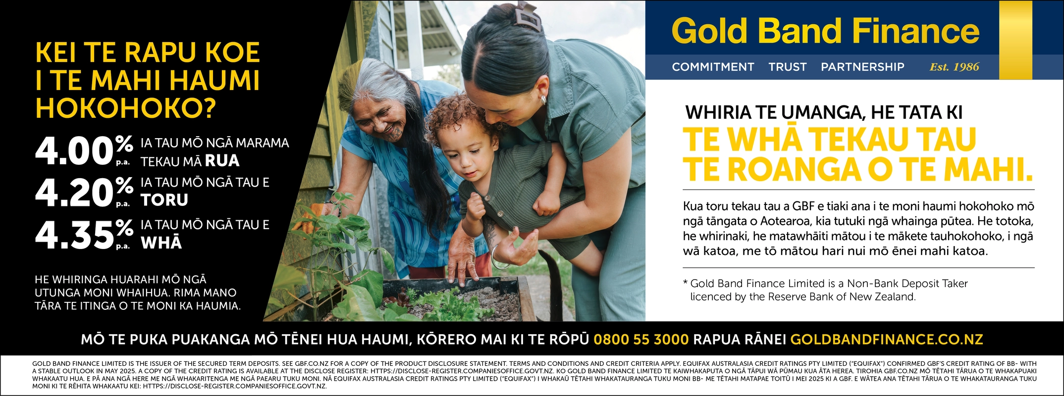 Gold Band Finance Limited offers deposit investments and makes business and personal loans. It is not an investment or financial adviser. Lending Criteria apply to all loans.